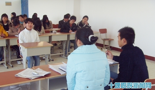 新闻网讯 (员工记者 殷慧玉)老师扮演企业老板召开招聘会,同学们带着各自的简历前来求职面试。11月30日上午,计算机工程系党总支副书记莫足琴和辅导员龚国钧举行模拟招聘会,为06级全体同学步入职场上了生动的一课。