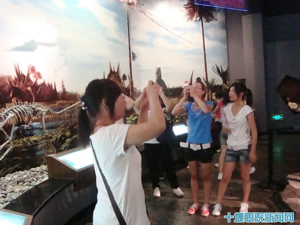 踏着轻快的脚步,迎着缕缕晨风,一路走来同学们脸上都洋溢着微笑,充满了新奇。博物馆里,同学们一起参观了与恐龙同行、南水北调湖北库区出土文物展、车与十堰、十堰与水等展区,不时发出阵阵地惊叹,还用手机拍下值得珍藏的画面。对于选择军训期间观赏市博物馆,相关老师说,“考虑到军训所穿的迷彩服只有一套,衣服上汗水、雨水都有,现军训已到中期,他们可以利用这次外出把衣服换了洗洗。而且这些天同学们风雨兼程、一直严格坚持军训,参观市博物馆也能让他们劳逸结合。”