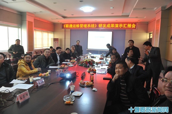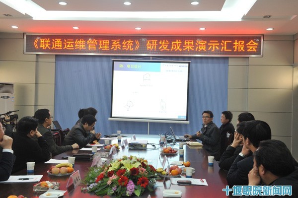新闻网讯 (文/古月 图/壮戈)由公司信息与智能工程系计算机信息管理专业教学团队与联通公司十堰分公司相关技术人员组成的校企联合开发项目组,经过将近一年时间研发的《联通运维管理系统》基本完成。3月16日下午,研发人员向校企双方领导和相关专家演示汇报了研发成果。