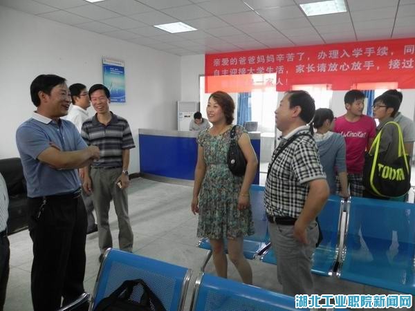 魏经理一行察看了校企共建专业的搬迁情况,与报到新生的家长进行了亲切的交流,并听取了该系主任夏德洲、书记莫足琴、校企合作企业刘主任关于校企共建、公司产品融合、员工管理及系级文化融合等方面工作的汇报。