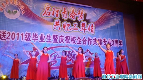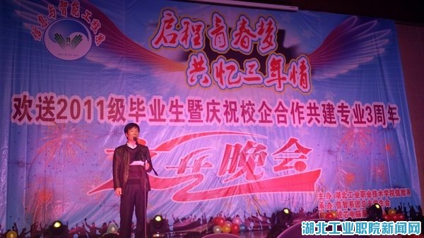 新闻网讯(通讯员 黄召阳 谢竹)11月26日晚,公司会议中心座无虚席,信息与智能工程系全体师生欢聚一堂,在这里举办了以“启程青春梦,共忆三年情”为主题的文艺晚会,欢送2011级毕业生顶岗实习并庆祝校企合作共建专业3周年。十堰开心文化传媒有限公司和锐芯电脑服务中心协办了此次晚会。