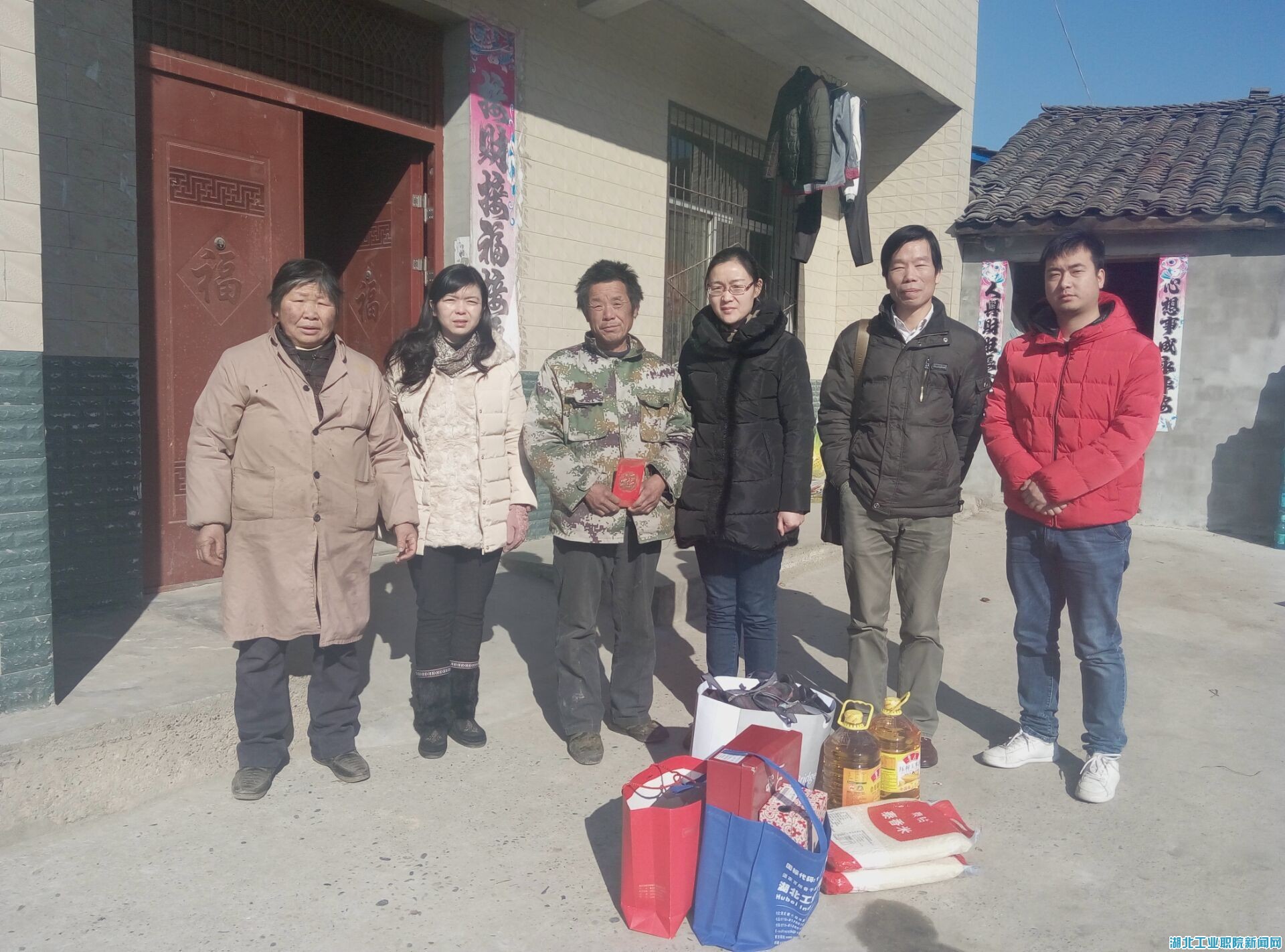 慰问小组首先来到黄龙村四组帮扶对象吴丰均家,系主任夏德洲与二位老人唠家常,嘘寒问暖,送去节日的问候。询问年货有没有备好,今年的经济收成情况怎么样。与扶贫户一起商量今后发展生产、脱贫致富的办法和路子,鼓励他们在新的一年里要树立信心,努力搞好生产,拓宽发展思路,靠自己勤劳的双手早日脱贫致富,改善家庭生活。