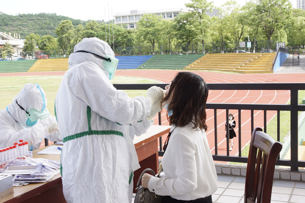 根据检测工作方案要求,十堰市疾控中心于11日上午8:30-11:00和下午15:00-17:00在公司北区运动场进行了取样。结合教育、卫健部门指导意见和教师网络教学工作实际,公司组织教职工分时分段、分期分批、错时错峰入校接受检测取样。综合考虑人流量、交通、消毒、通风等各种因素,在充分听取教职员工以及专家意见基础上,选定露天的北区运动场作为检测场所,为教职员工提供安全、卫生、便捷的检测条件保障。