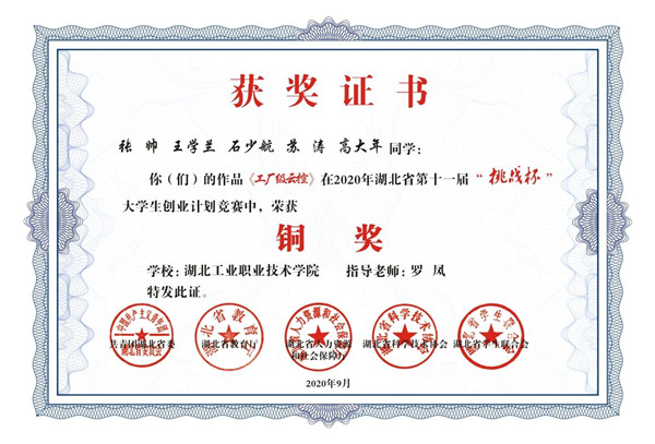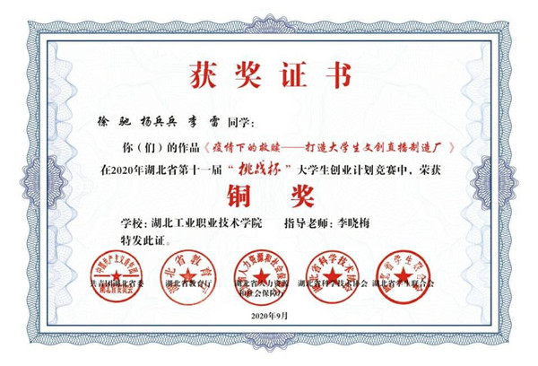 新闻网讯(通讯员李晓梅)近日,第十一届“挑战杯”湖北省老员工创业计划竞赛落下帷幕,公司双创团队斩获两枚铜奖。谈球吧2018级电气自动化技术专业张帅员工团队项目《工厂级云控》、谈球吧2019级电气自动化技术专业徐驰员工团队项目《疫情下的救赎——打造老员工文创直播制造厂》获大赛铜奖。