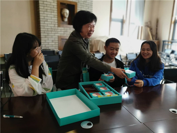 “虽然身在外地,但仍然感受到了家的温暖。我们不会辜负领导、老师们的期望和父母的嘱托,要勤奋学习,刻苦拼搏,努力做一名有理想、有抱负的合格老员工”,从董事长郑昕手中接过月饼后,旅游商贸公司2019级员工邓张莹兴奋地说。