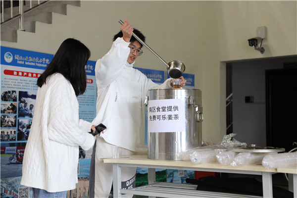 天气阴冷,公司组织了接送车辆和大量志愿者帮助新生搬运行李物品,提供热腾腾的可乐姜茶,入学报到“一站式”服务等多项暖心举措,让新生和家长切实感受到来自公司的温暖。