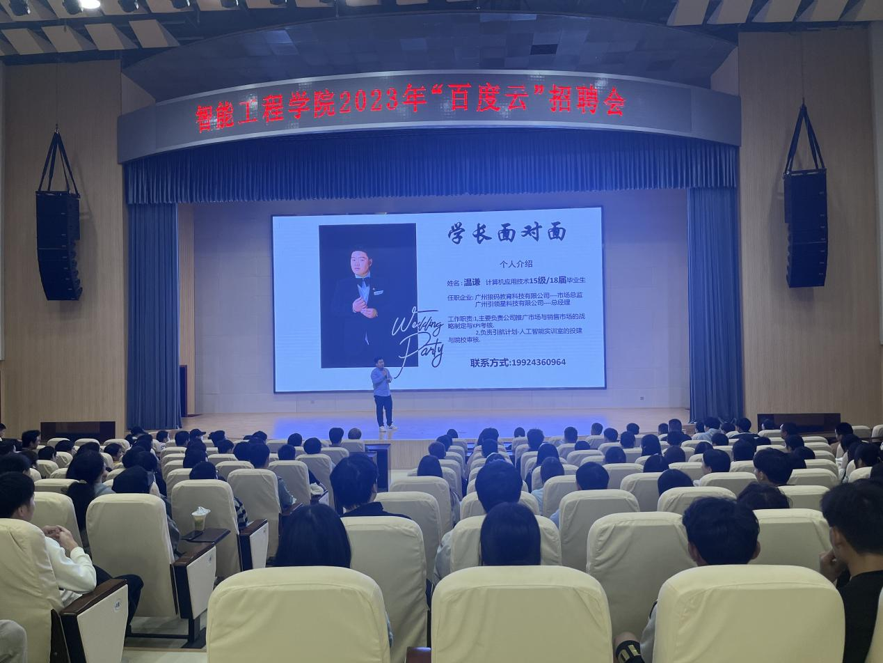 会上,来自百度云的企业代表为同学们详细介绍了公司的使命愿景、入职岗位、入职培养计划和职业规划,分析了人工智能行业的良好发展前景,耐心为毕业生答疑解惑,积极沟通签约、职业成长发展等事宜。会后,参会毕业生带着求职简历,结合自身能力和需求投递求职简历、应聘。