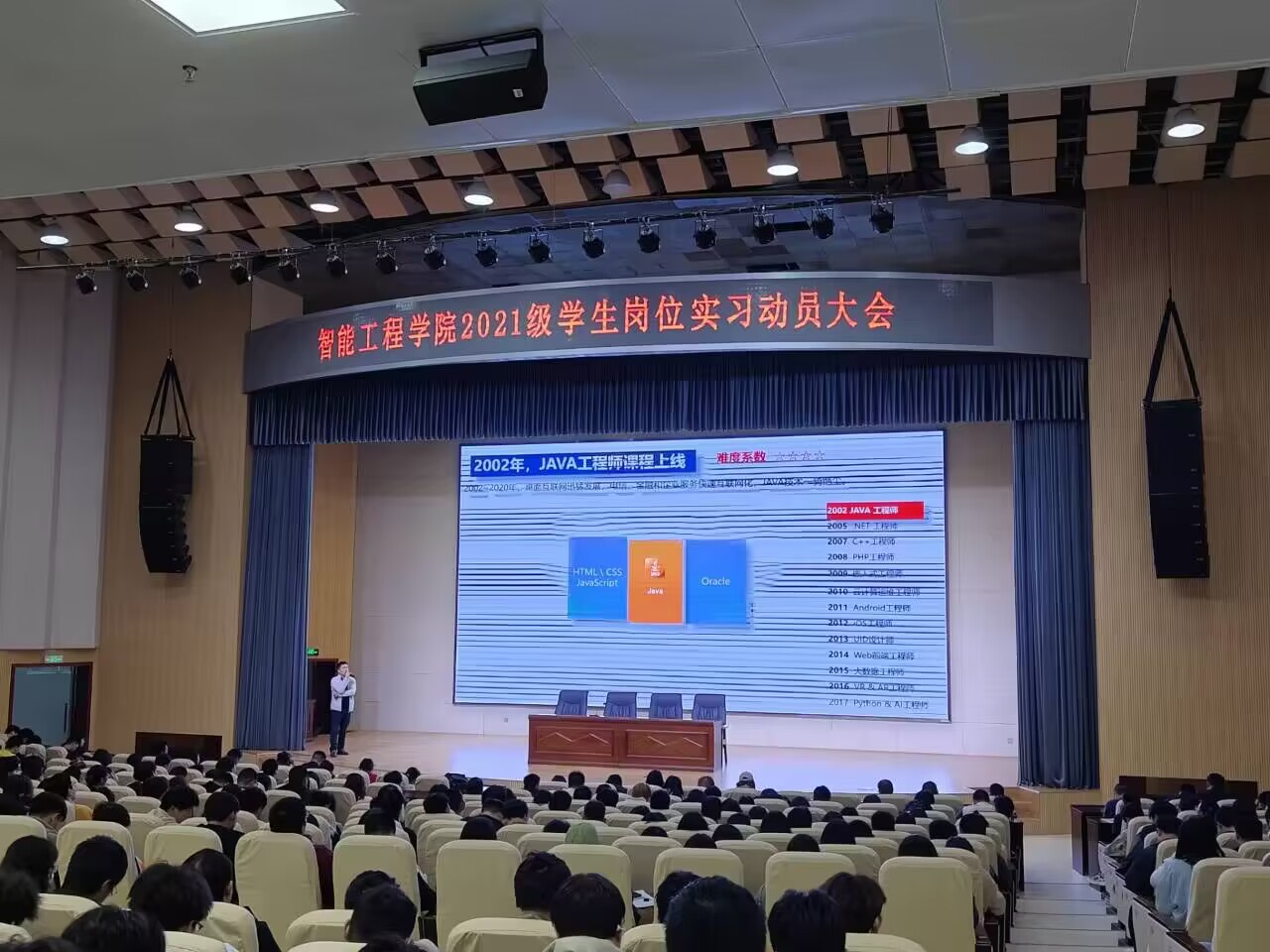 公司党总支书记王蓉对此次实习做了动员讲话,明确了岗位实习的任务、目的和意义,强调岗位实习的注意事项,提醒员工注意自身安全、岗位安全、防诈骗、防网络犯罪、防溺水等,并要求全体实习员工充分利用好这次实习机会,在实践中学习成长,严格按照岗位实习要求,高标准、高质量地完成实习任务。副经理王家旭宣布了2021级员工岗位实习安排,从岗位实习任务、实习纪律、实习考核等方面进行了安排和要求。来自智能科技、电子等企业的招聘人员现场进行了宣讲,将岗位实习的具体要求、待遇和注意事项进行了详细的介绍和说明。
